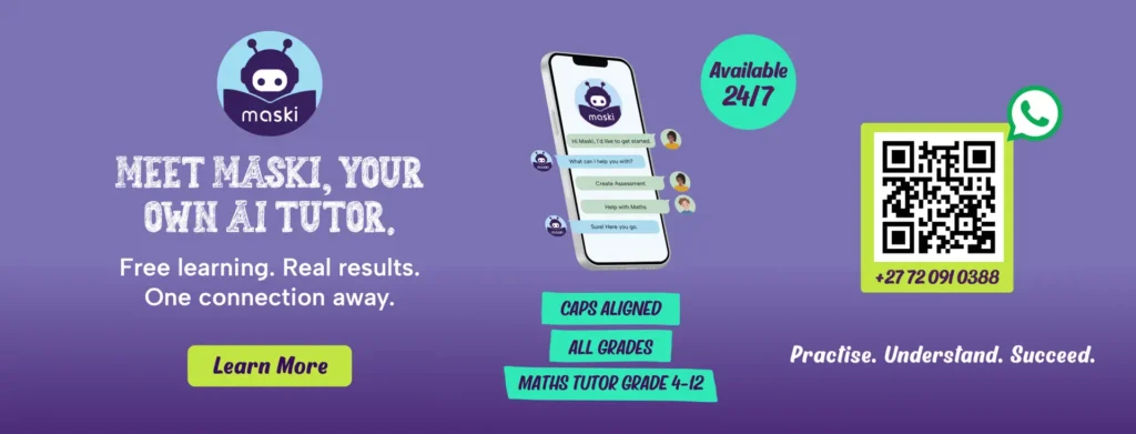 Master Maths with Maski®’s AI-powered Maths Tutor! Now available for Grade 7-12 Mathematics learners. This powerful AI tool offers step-by-step guidance to help learners solve Maths problems and provide extra practice questions.